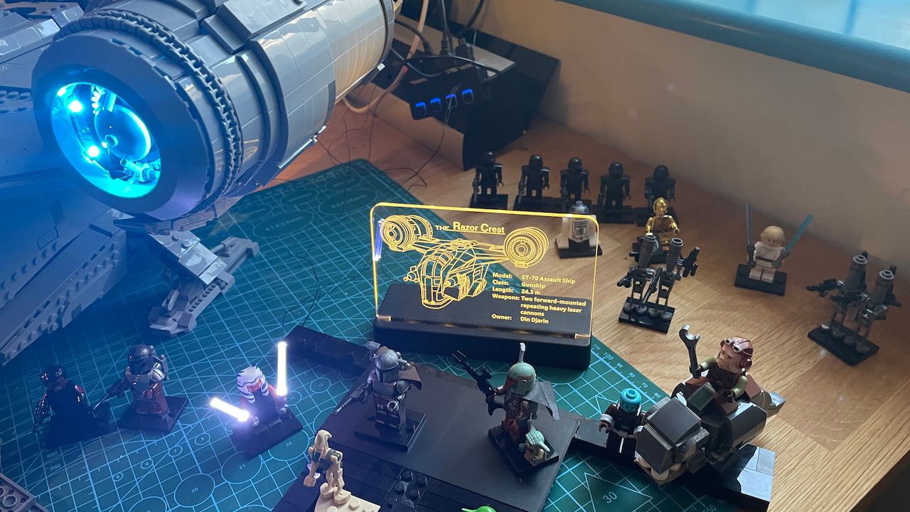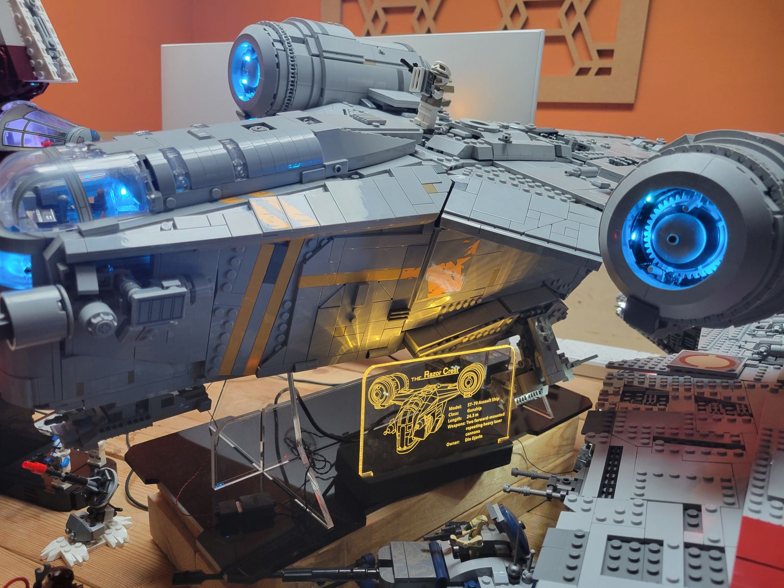 Elevate your LEGO The Razor Crest 75331 with our radiant LED Nameplate. Seamlessly showcasing its model, class, and iconic details, it doesn't just enhance—it pays homage to an intergalactic legend.