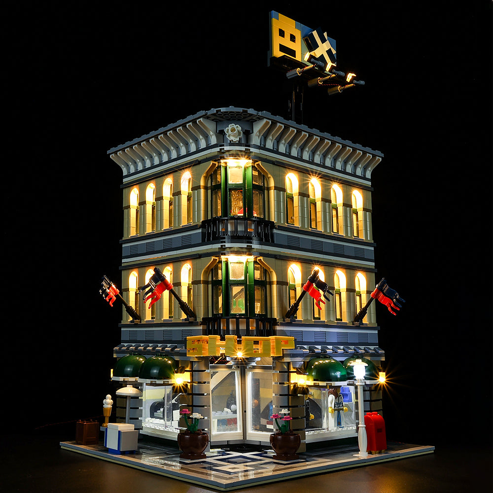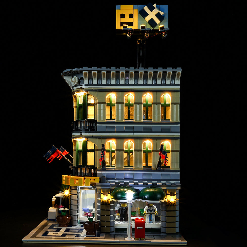 We have developed a special set of Game of Bricks LEGO Lights for this LEGO Grand Emporium 10211 3-story department store including street lighting, lights for the interior and exterior of the building, and unique lights for the billboard!