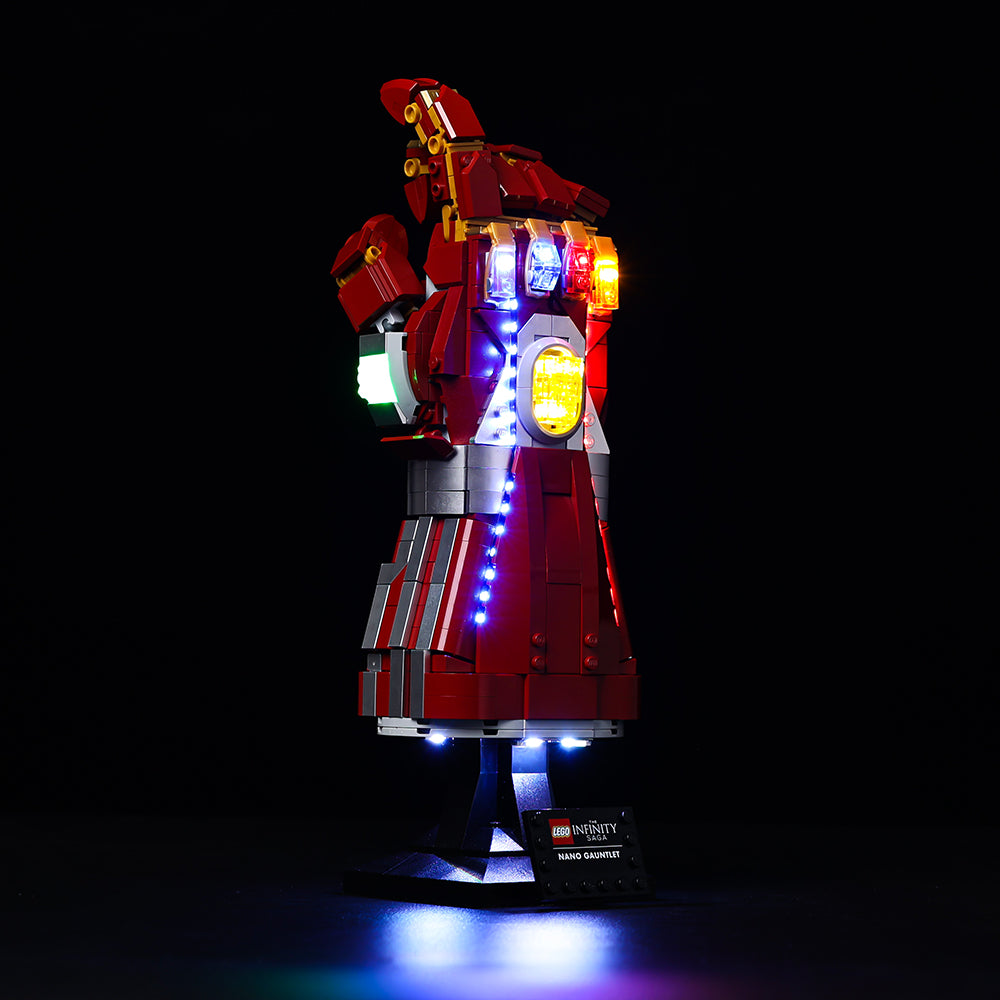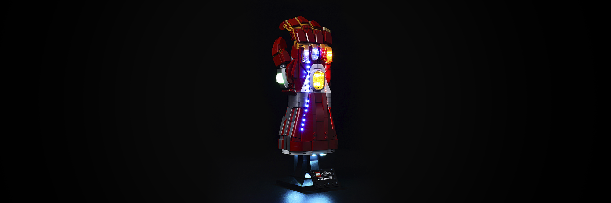 Make your LEGO Nano Gauntlet 76223 look mouthwatering while being displayed by using our awesome LED Nameplates.
