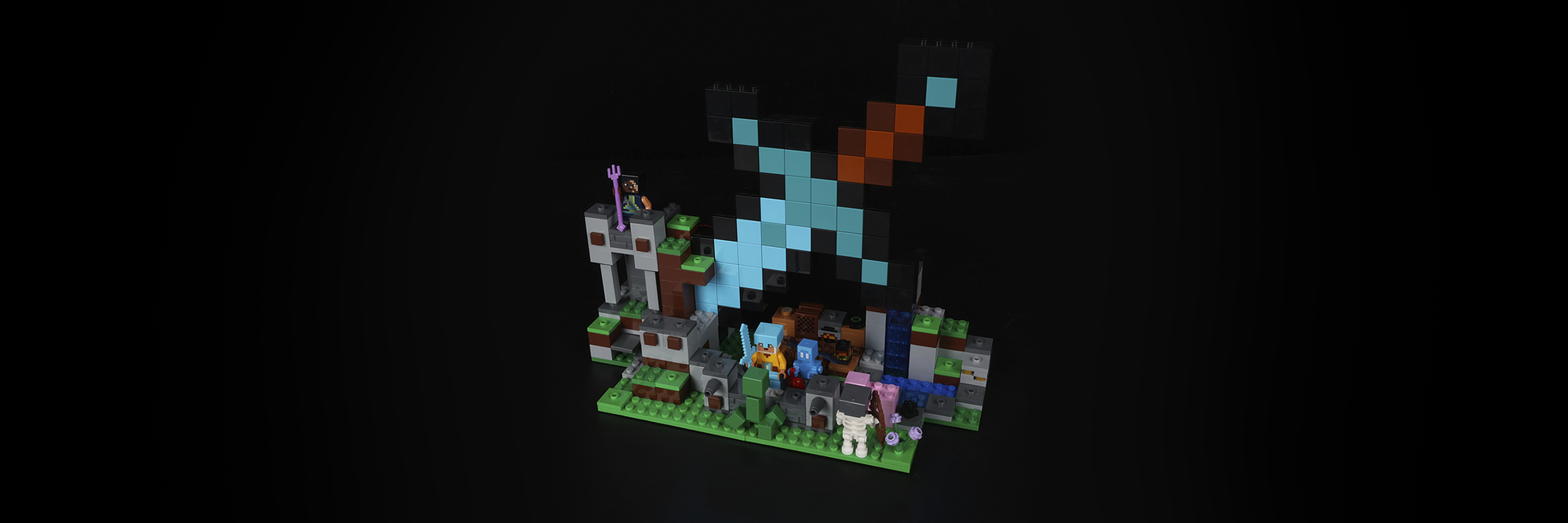 Engage in classic Minecraft® build-and-battle action. Construct the imposing base, taking the shape of the legendary diamond sword, and prepare for an exhilarating confrontation with the menacing Creeper™ and skeleton.