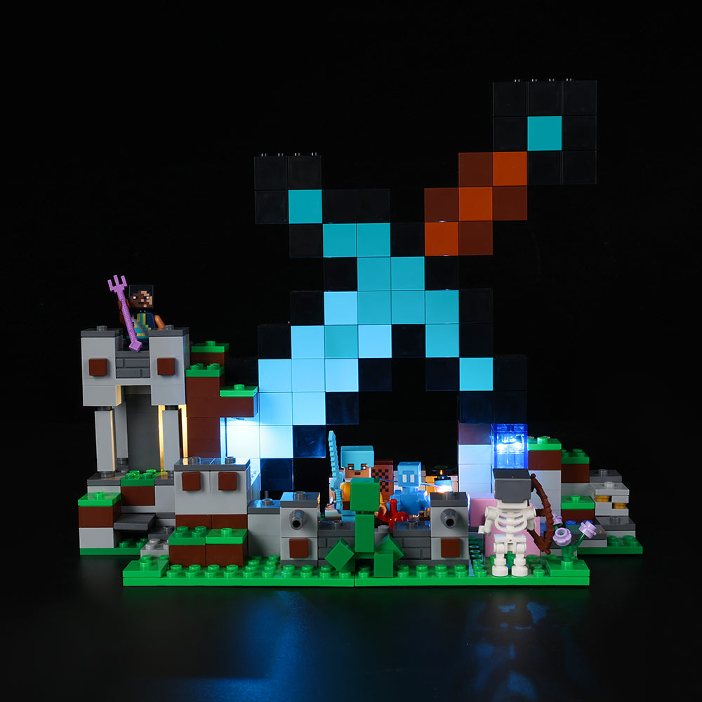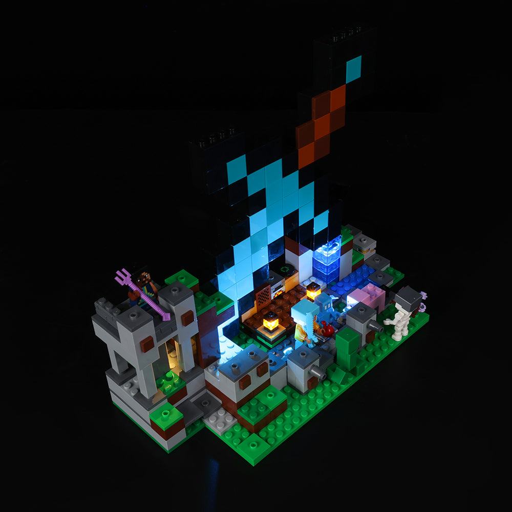 Dive into a realm where iconic Minecraft® elements merge with LEGO creativity. The LEGO Sword Outpost 21244, shaped like the revered diamond sword, stands tall and radiant under the glow of our LEGO Lights, offering a grandeur that beckons players into its embrace.