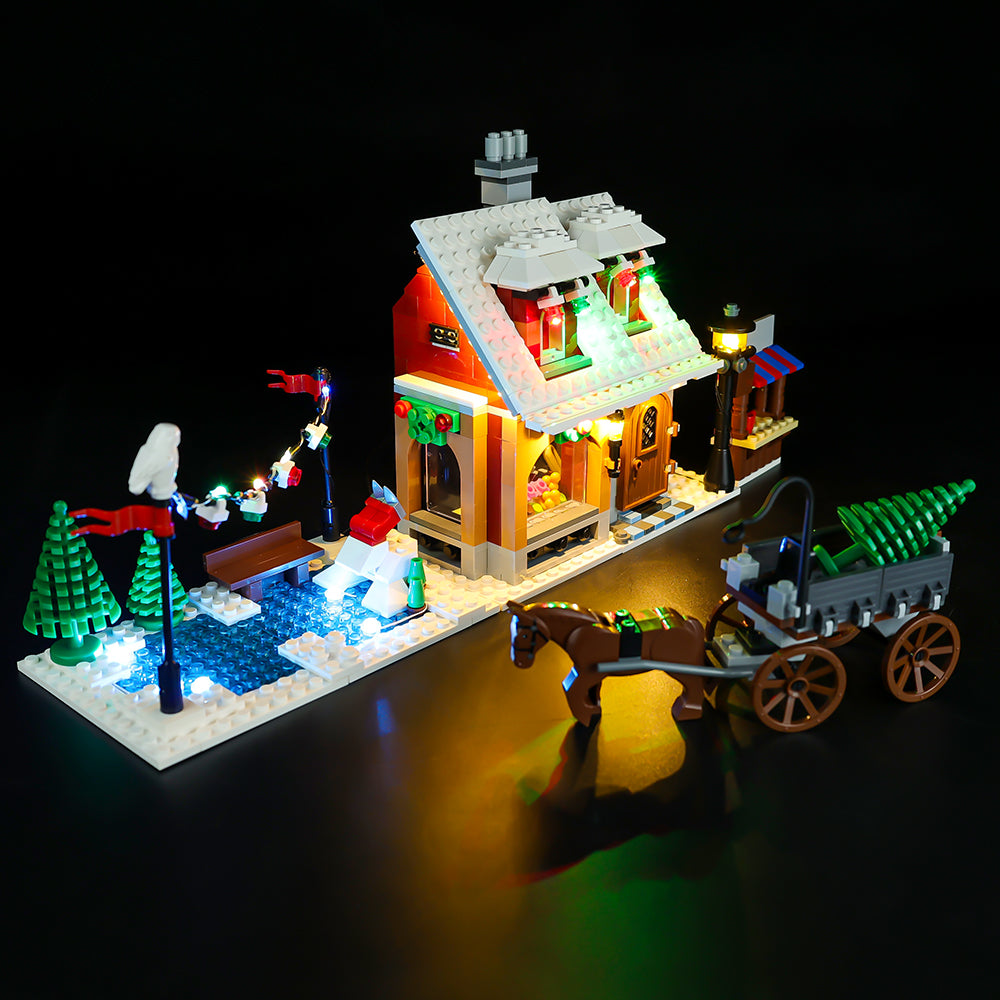 This tiny LEGO Winter Village Bakery 10216 snow-covered village is a winter delight! While ice skaters frolic on the frozen pond with multicolored lights and an inquisitive owl perched overhead, a special-delivery evergreen arrives at the tree-stand seller's by horse-drawn cart, ready for decoration. Just keep an eye out for newly shoveled snow mounds; one skater has already fallen in head-first! The cheerful baker at the neighborhood bakery bakes delectable Christmas delicacies in his oven while ringing up purchases at the cash register. To fill the structure with warm interior light, push the glowing LEGO Power Functions block! 7.5 minifigs, a snow owl, a horse, and a variety of winter accessories are included in this 687-piece model. Feel the jow of Christmas by assembling pieces of the LEGO Winter Village Bakery 10216 set together. Make it look realistic by installing our LEGO LED Lights.