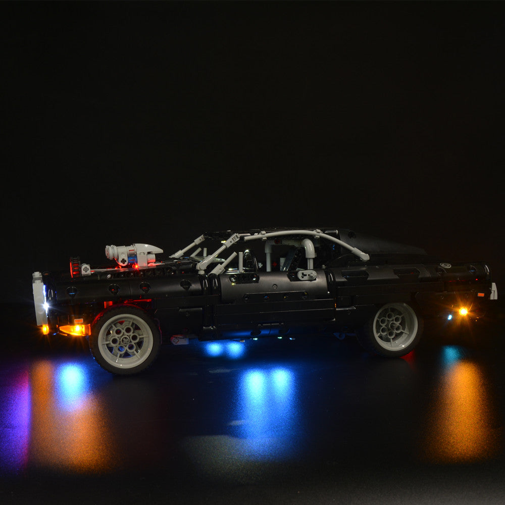 Experience the radiant allure of the LEGO Dom's Dodge Charger 42111. With the added magic of LEGO Lights, watch the bricks transform into a blazing icon, echoing the intense speed and drama of the Fast & Furious saga, captivating every observer's gaze.