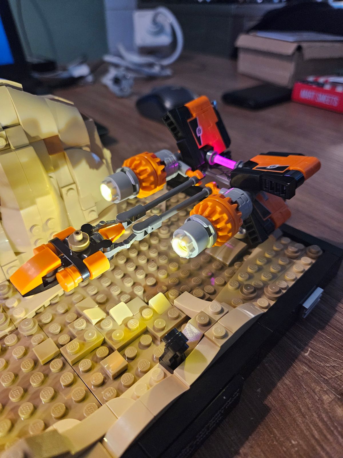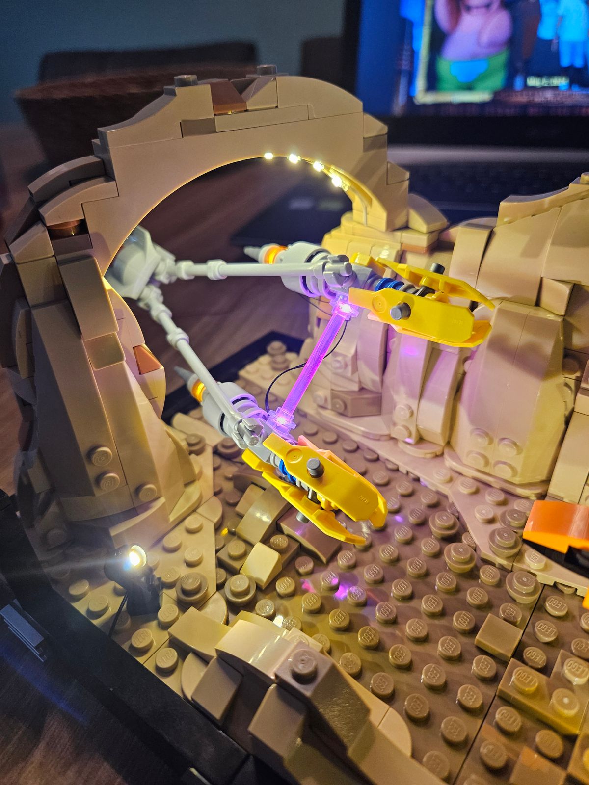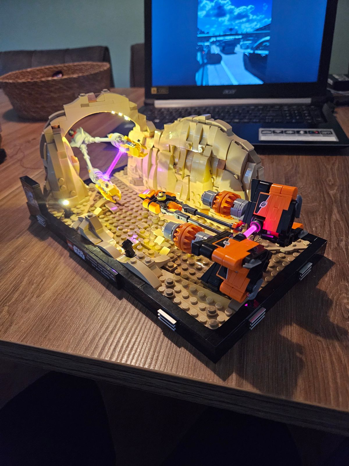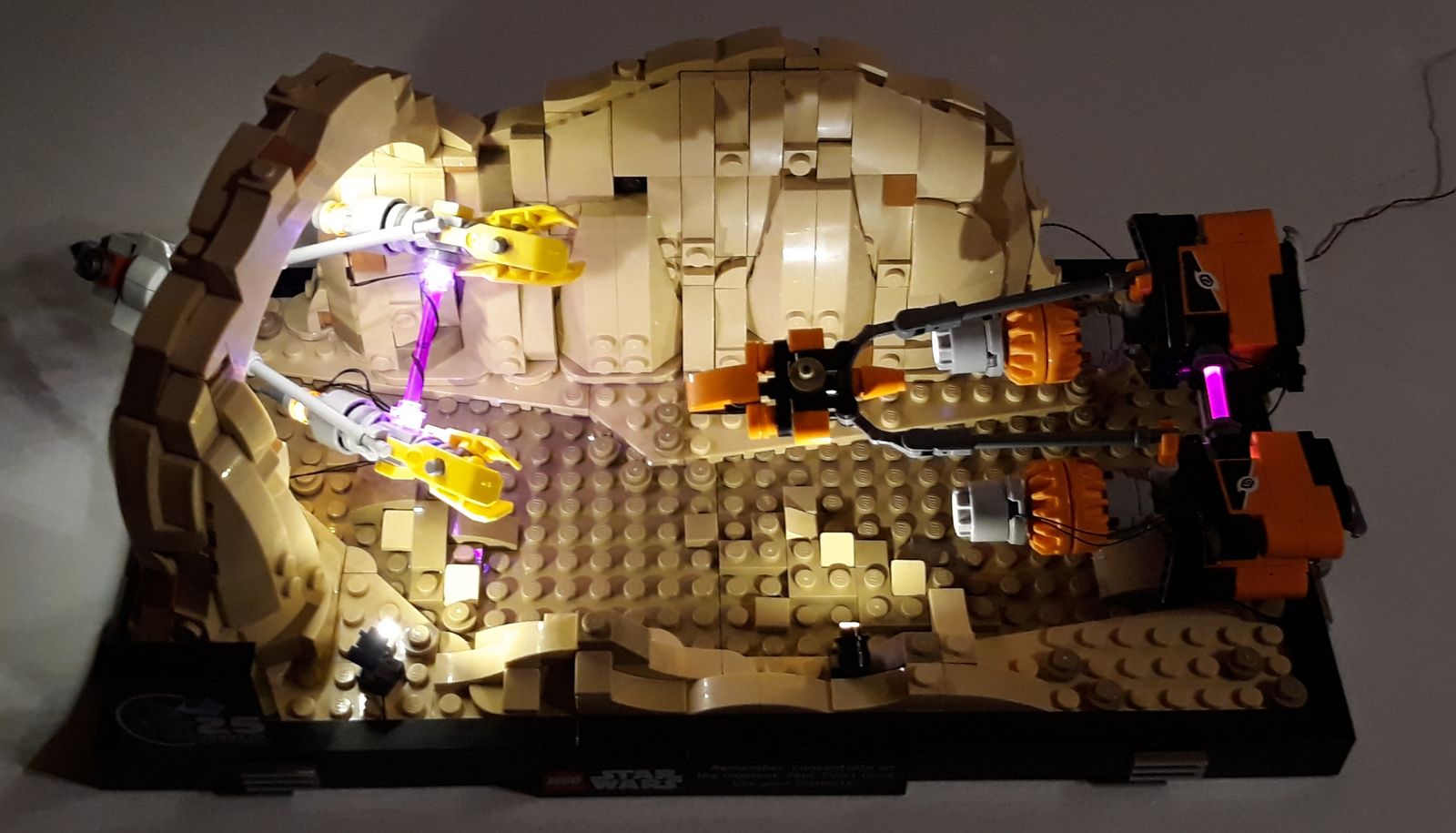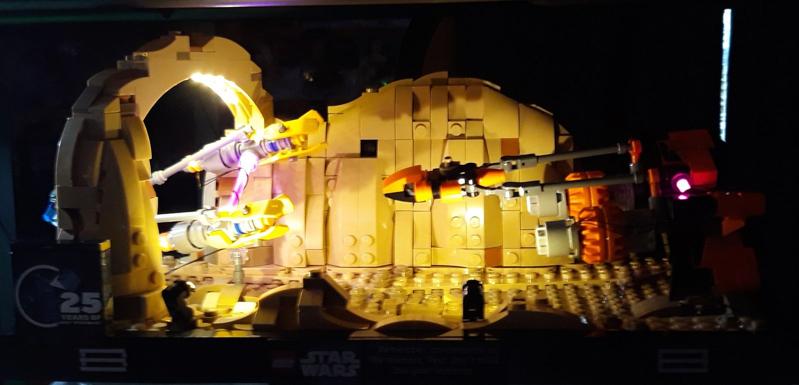 Made for display – The set features the Arch Canyon part of Tatooine’s Mos Espa Podracing circuit, plus a LEGO® Star Wars™ 25th anniversary brick and a plaque with a Qui-Gon Jinn quotation, enhanced with LEGO LED lights.