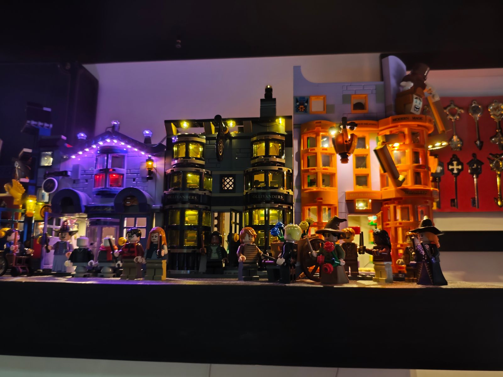 Ollivanders and Madam Malkin's can be connected to each other and to other LEGO Harry Potter Diagon Alley models (sold separately) to create an enchanting brick-built shopping street, brought to life with LEGO lights.