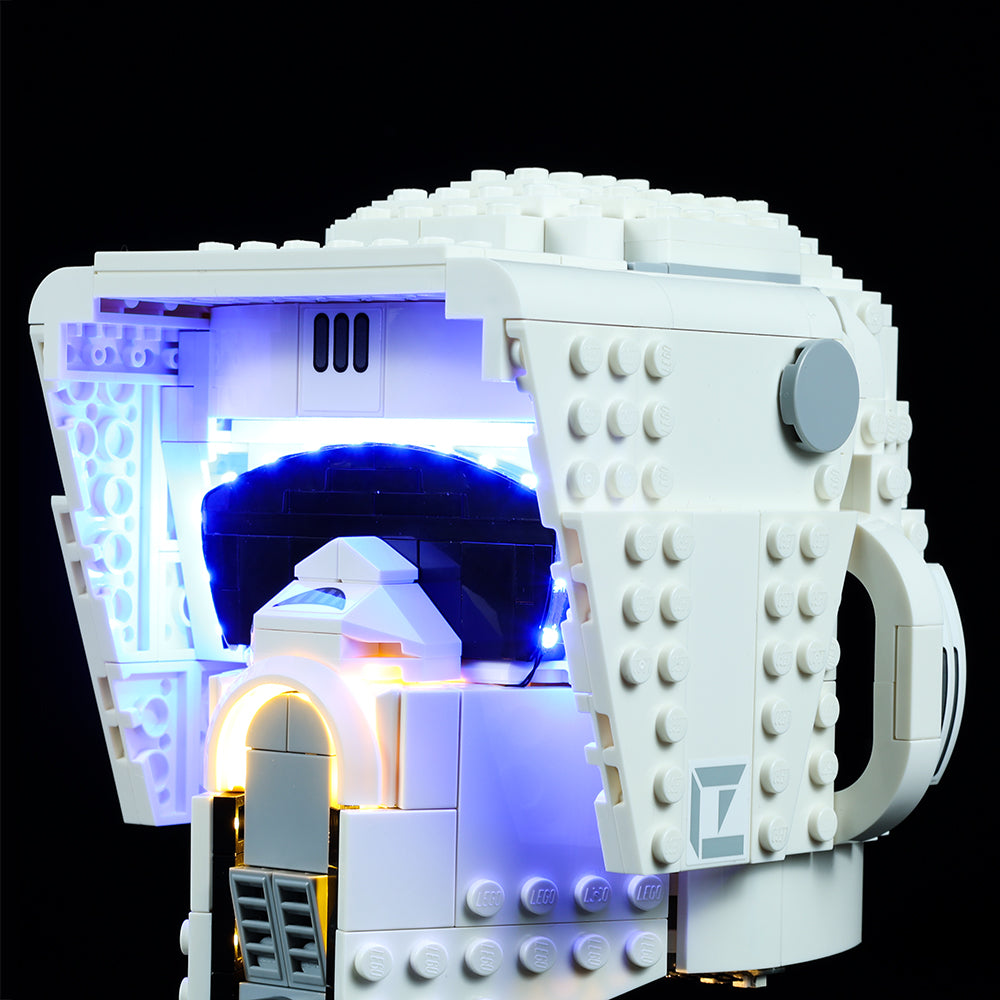 Enhance the beauty of your room’s décor by building and displaying the LEGO Scout Trooper Helmet 75305 set. Looking at it will help you relive epic memories from the Star Wars movie. Make this helmet look classier by installing our ever-glowing LEGO Lights.