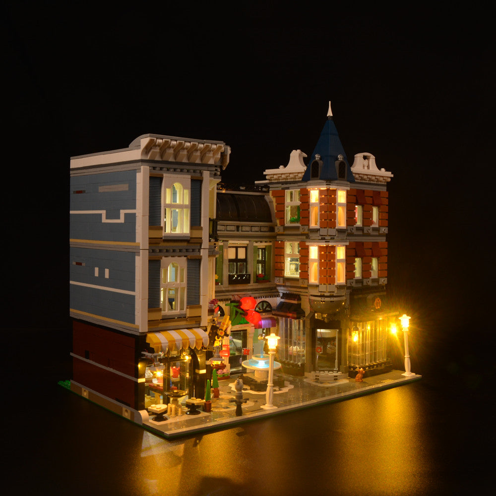 This LEGO Building set many mouth-watering features that make it look like the real deal. Some of the detailed features of this set are a café, bakery, and florist shop in the ground level, a nice music store, a dental office, and photo studio in the middle level, and an apartment in the upper level that makes the barbecue at the rooftop terrace accessible, and a dance studio also in the upper level. Beautify both the interior and exterior of this intricately detailed LEGO Assembly Square 10255 set with our outstanding LEGO LED Lights.