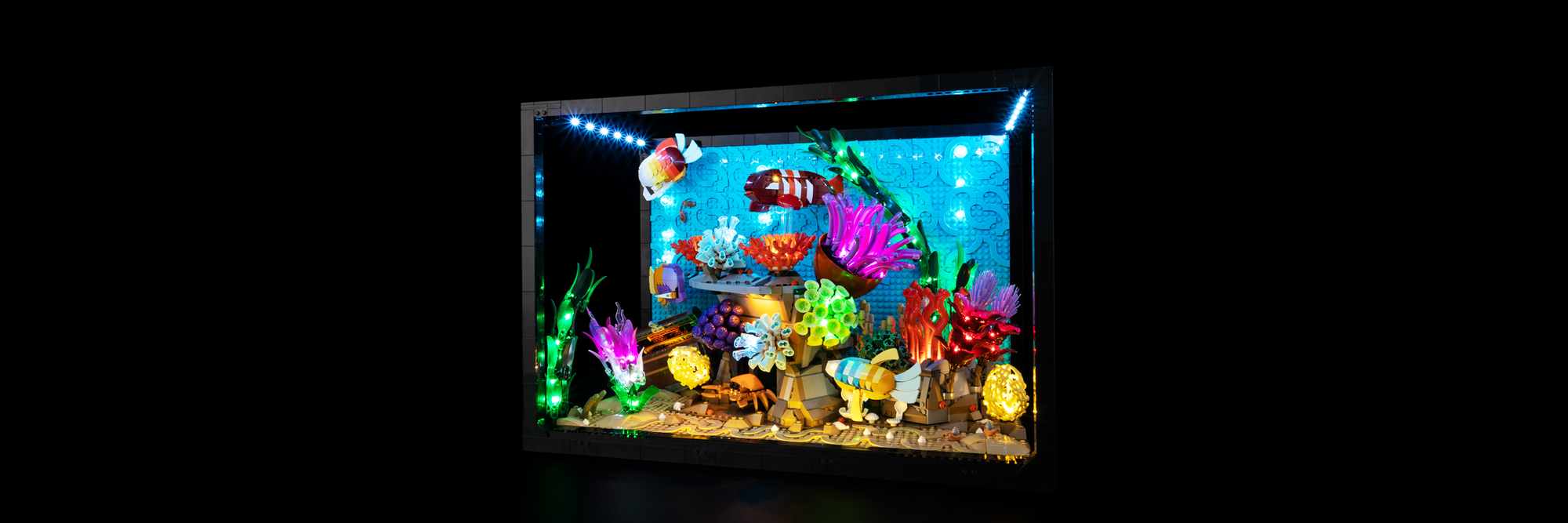 Transform your space with the LEGO Tropical Aquarium 10366. Our LEGO Lights bring this vibrant fish tank to life, full of motion, color, and calming energy.