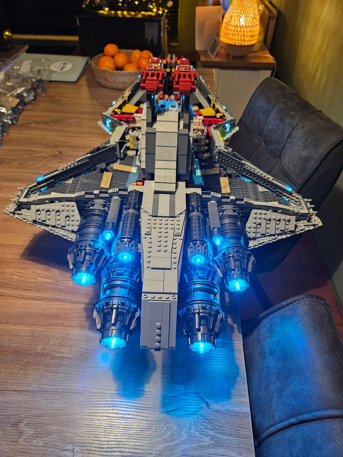 This colossal LEGO Star Wars creation, stretching over 43 inches in length, serves as an awe-inspiring centerpiece, dazzling all who behold its majestic design and intricate detailing, all under the radiant illumination of our LEGO Lights.